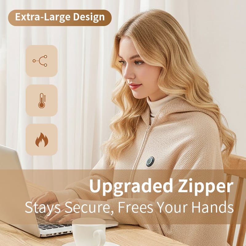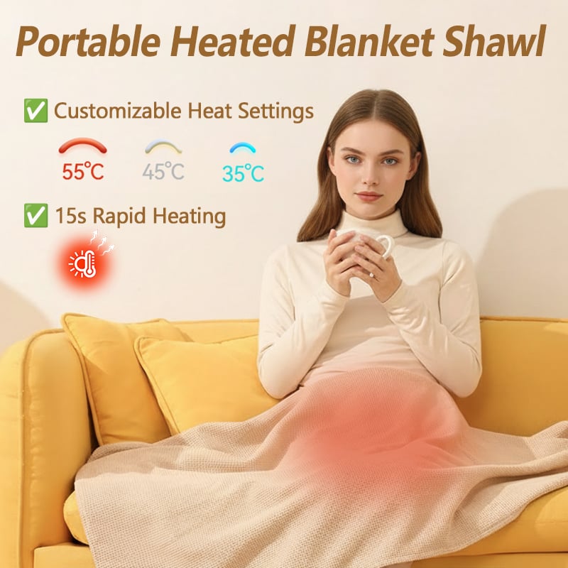 Experience luxurious warmth and comfort wherever you are. This portable heated shawl combines advanced heating technology, cloud-like softness, and a cordless design to keep you warm at home, in the office, during travel, or even in your car.